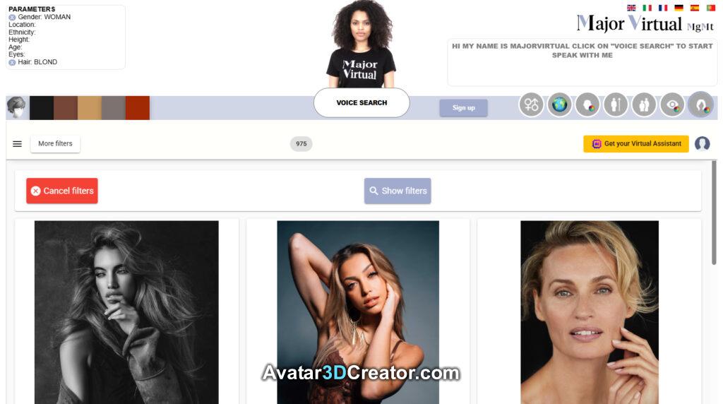 La nostra azienda ha sviluppato questo avatar AI interattivo per una nota agenzia di modelle internazionale con sede a Milano: MajorVirtualMGMT.com. L'avatar esplora e seleziona i modelli utilizzando parametri avanzati come il sesso, posizione, etnia, altezza, età, colore degli occhi, e tipo di capelli.